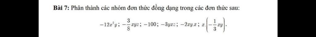 Nhóm `2: -3/8 xyz` và `-3xyz` vì có cùng phần biến là `xyz`