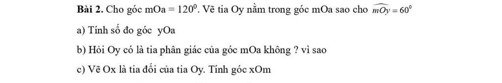 Vì `\hat{yOa}=\hat{yOm}=60^o`