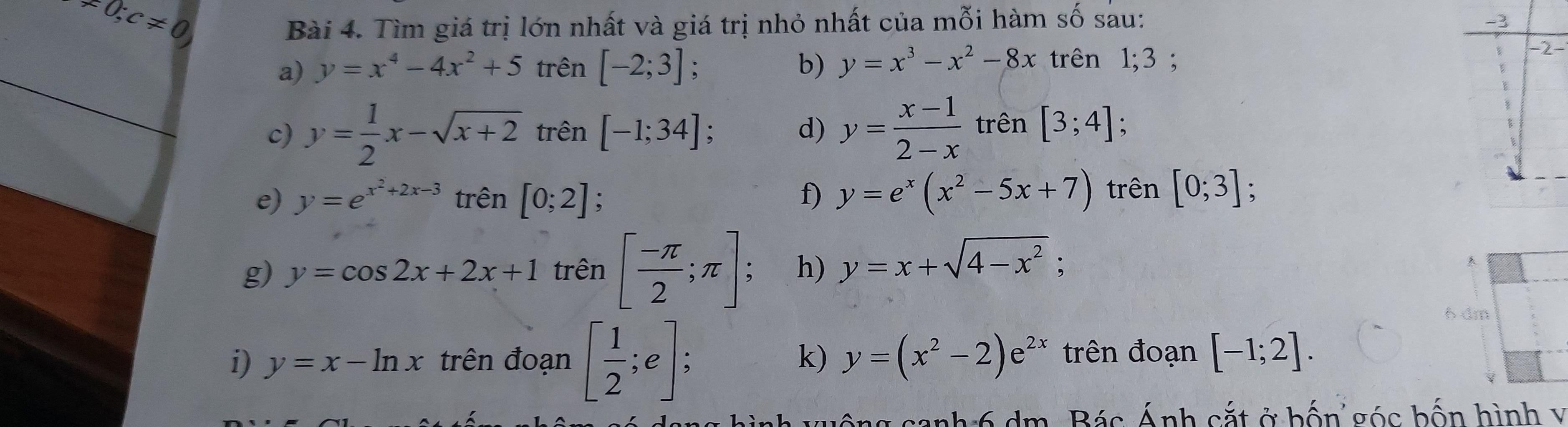 Bài 4. Tìm giá trị lớn nhất và giá trị nhỏ nhất của mỗi hàm số sau: