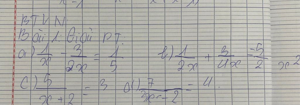 `a)1/x-3/(2x)=1/5(x\ne0)`