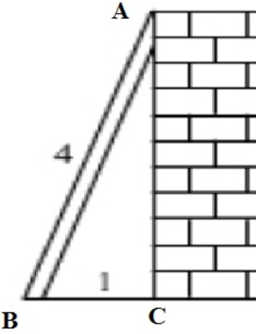 tính chiều cao của bức tường hình nên biết chiều cao của thang là 4m và chân thang cách tường là 1m