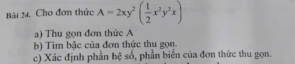 Phần biến của đơn thức thu gọn là: `x^4y^4`