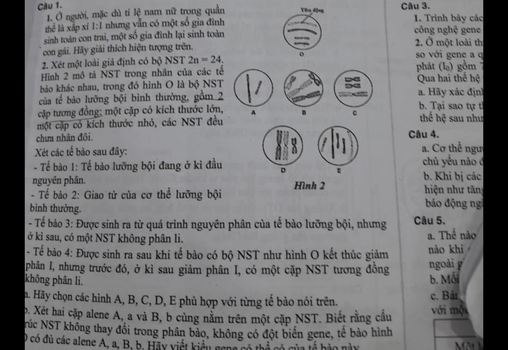 2. Xét một loài giả định có bộ NST 2n = 24,