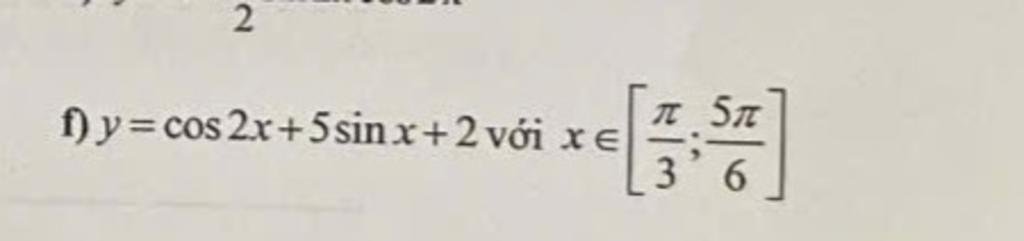 `to min y = 5` tại `x = (5pi)/6 ; max y = 6` tại `x = (pi)/2`