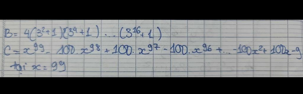 `B=1/2(3^2-1)(3^2+1)(3^4+1)..(3^16+1)`