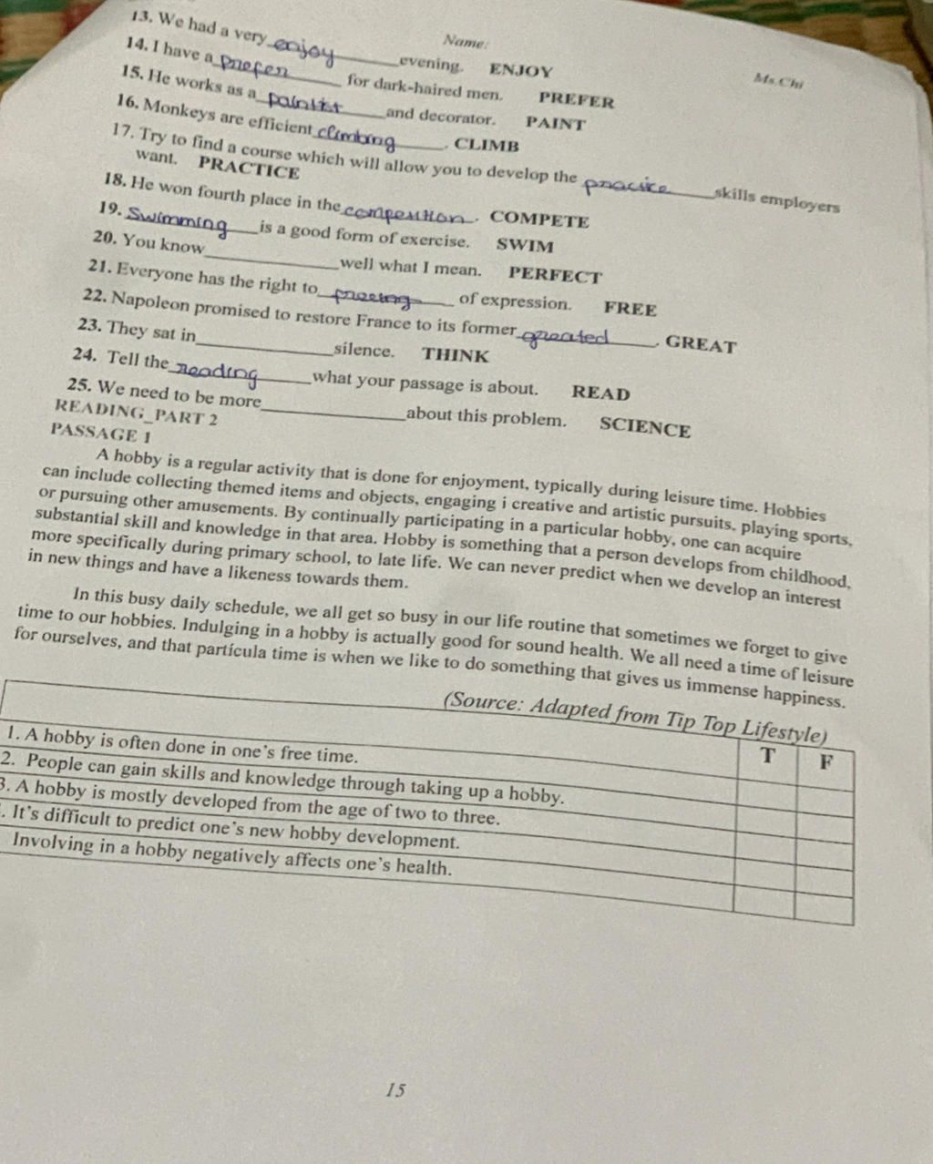 - Dẫn chứng : Hobby is something that a person develops from childhood, more specifically during primary school, to late life.