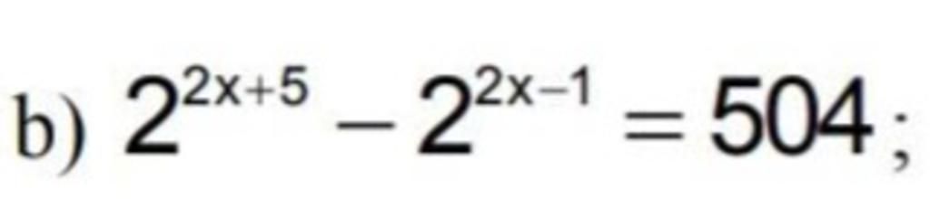 `b)` `2^(2x+5) - 2^(2x-1) = 504`