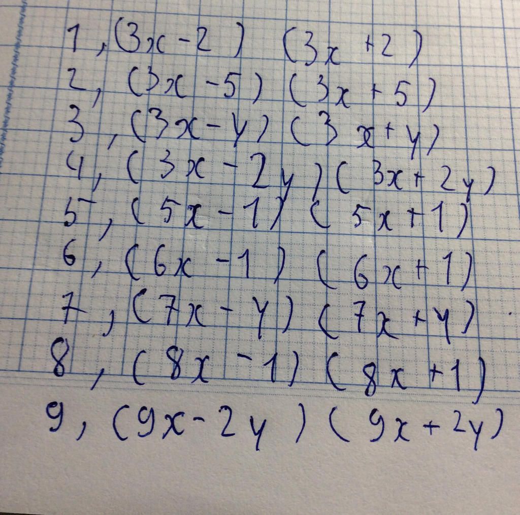 `2)` `(3x-5)(3x+5) = (3x)^2 - 5^2 = 9x^2 - 25`