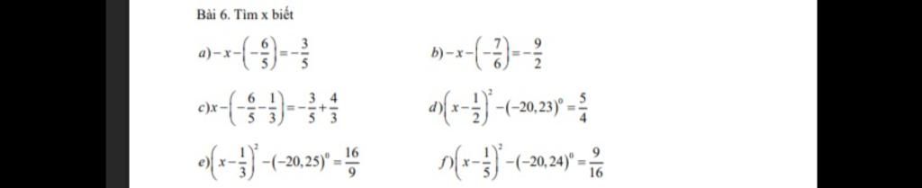 f) `(x - 1/5)^2 - (-20,24)^0 = 9/16`
