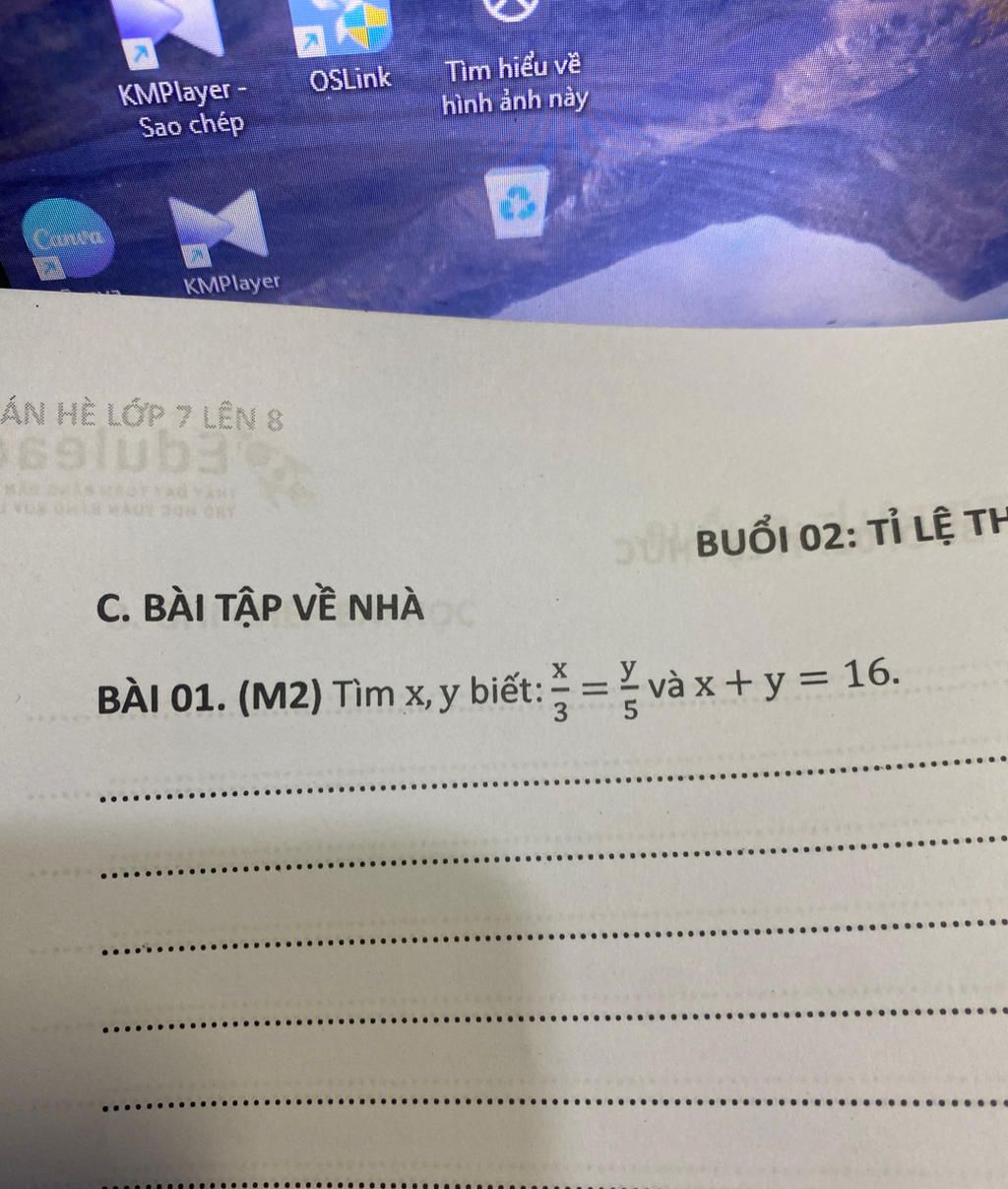 `x/3 = y/5 = (x+y)/(3+5) = 16/8 = 2`