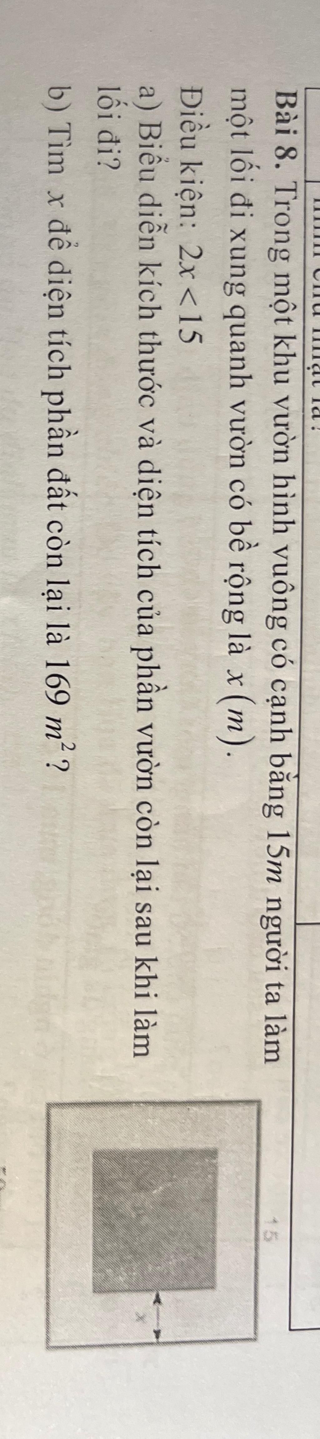 Bài 8. Trong một khu vườn hình vuông có cạnh bằng 15m người ta làm
