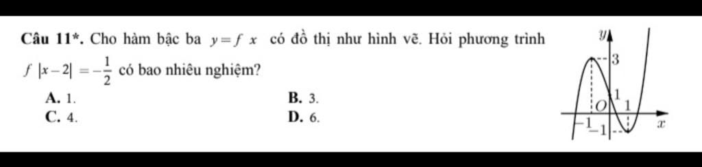 Từ bảng biến thiên `=>` Phương trình có `4` nghiệm