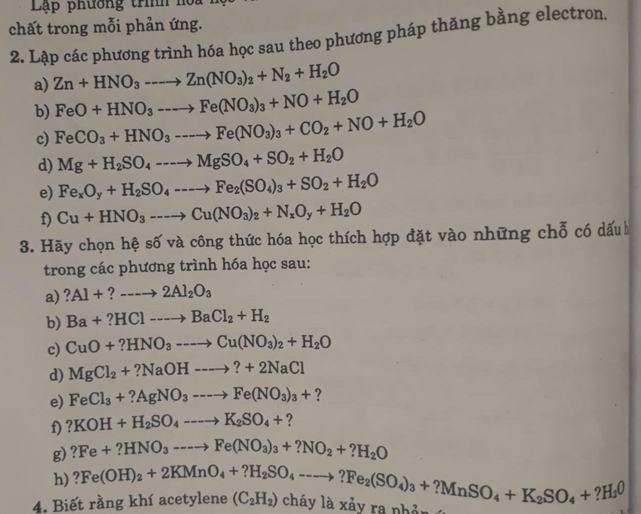 $\rm e. 2Fe_xO_y+(6x-2y)H_2SO_4 đ,n \to xFe_2(SO_4)_3+(3x-2y)SO_2+(6x-2y)H_2O$
