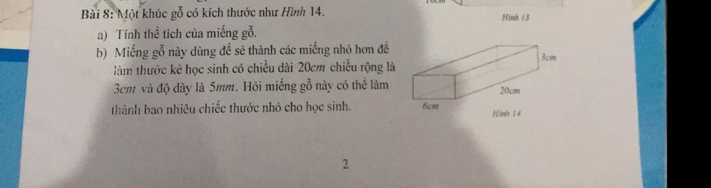 a)Thể tích miếng gỗ là: 20.3.6=360(cm^3)