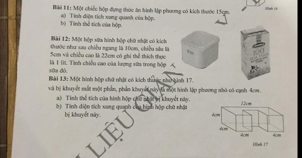 Bài 11: Một chiếc hộp đựng thức ăn hình lập phương có kích thước 15cm.