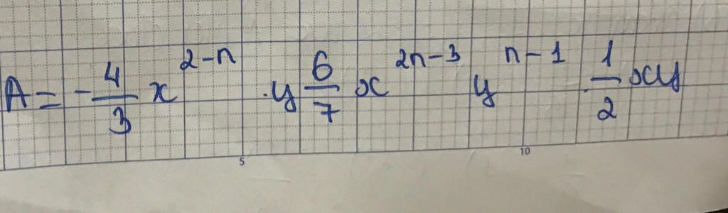 `A = -4/3 x^(2-n) .y 6/7 x^(2n-3) y^(n-1) . 1/2 xy`