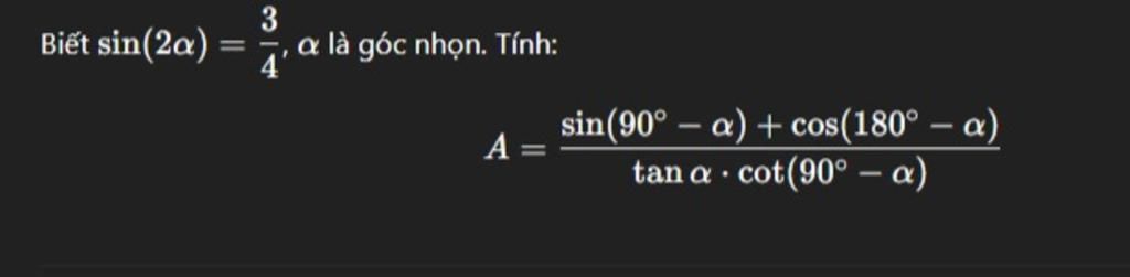 Ta được : `A=(cosa-cosa)/(tana*tana)=0/(tan^2a)=0`