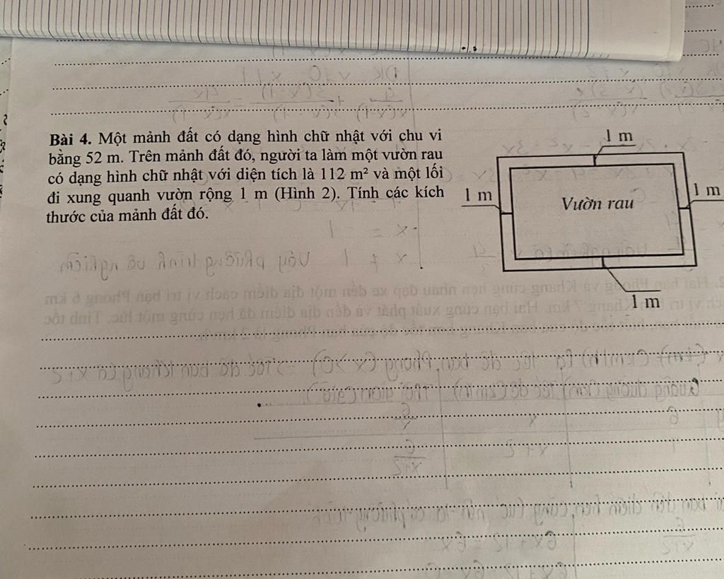 Vậy mảnh đất có chiều rộng là 10 m và chiều dài là 16 m.