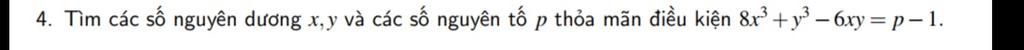 `8x^3 + y^3 - 6xy = p - 1`