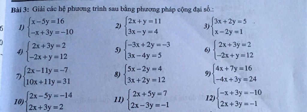 `7, {(2x - 11y= -7),(10x + 11y = 31):}`