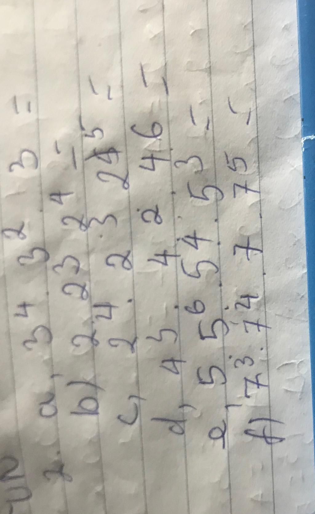 `f)` `7^3 . 7^4 . 7 . 7^5`