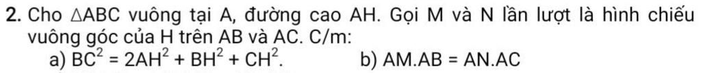 Vậy `AM*AB=AN*AC` do cùng bằng `AH^2`