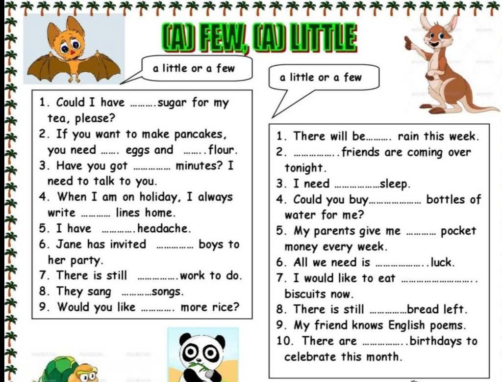 `-` a little: một ít, một chút( đủ dùng ) `;` a little là một lượng từ