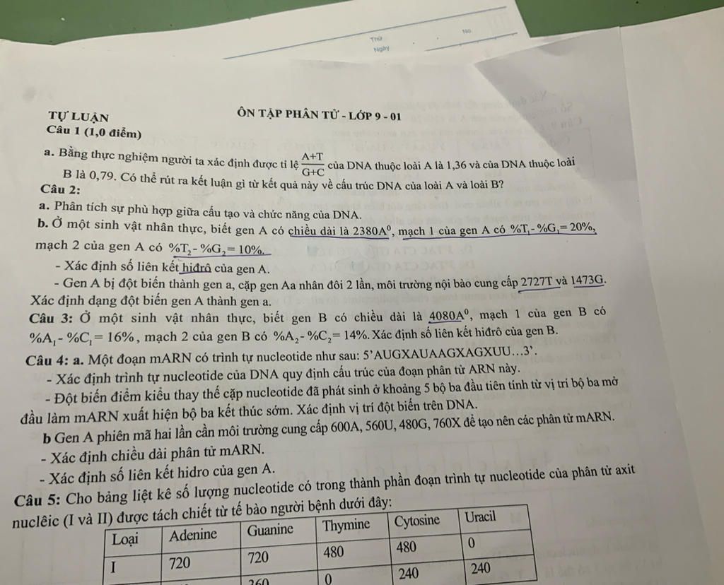 ÔN TẬP PHÂN TỬ - LỚP 9 - 01