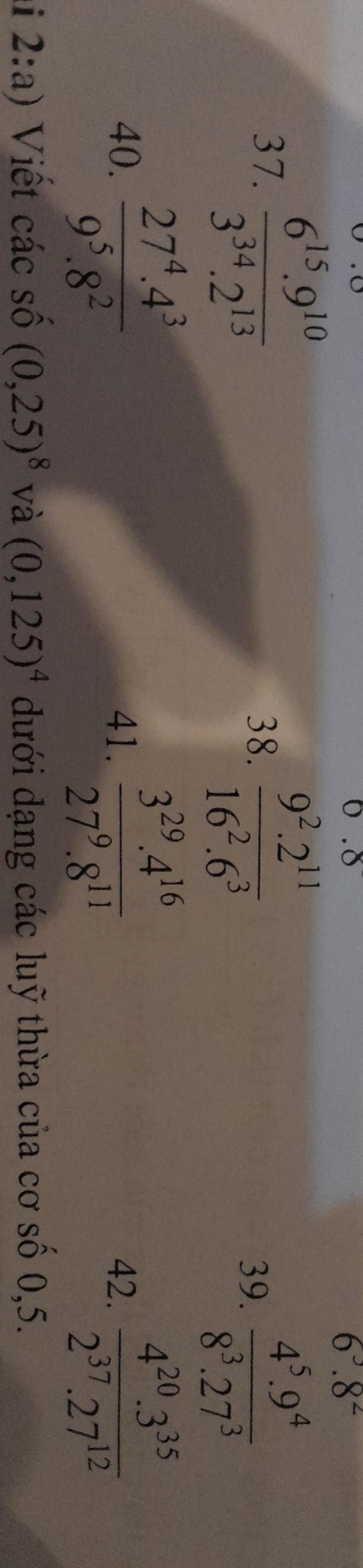 39. `=((2^2)^5.(3^2)^4)/((2^3)^3 .(3^3)^3))=(2^10 . 3^8)/(2^9 .3^9)=2/3`