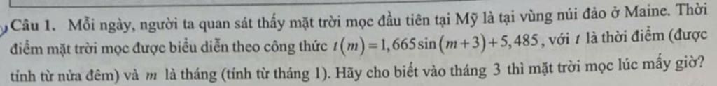 Vậy vào tháng 3, mặt trời mọc lúc khoảng $5$ giờ $1$ phút.