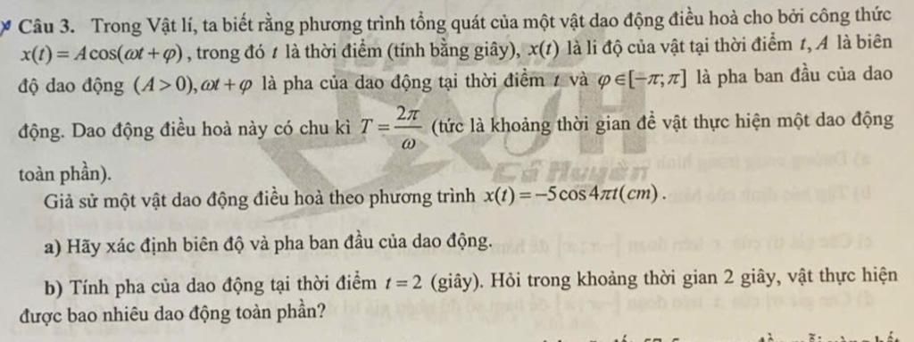 Pha dao động tại thời điểm `t=2` giây là: `4pi*2+pi=9pi` hoặc `4pi*2-pi=7pi`