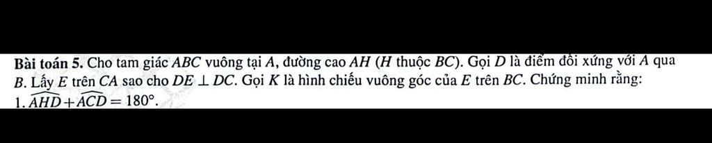 $\to \widehat{AHD}+\widehat{ACD}=(\widehat{AHB}+\widehat{BHD})+\widehat{ACD}=(90^o+\widehat{BDC})+\widehat{ACD}=90^o+\widehat{BDC}+\widehat{ACD}=90^o+\widehat{ADC}+\widehat{ACD}=90^o+90^o=180^o$