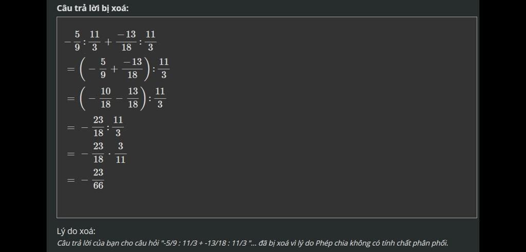 Đáp án: Không. Phép chia không có tính chất phân phối đối với phép cộng hoặc phép trừ (giống phép nhân). Tuy nhiên, nó lại có tính chất phân phối phải (không có tính chất phân phối trái).