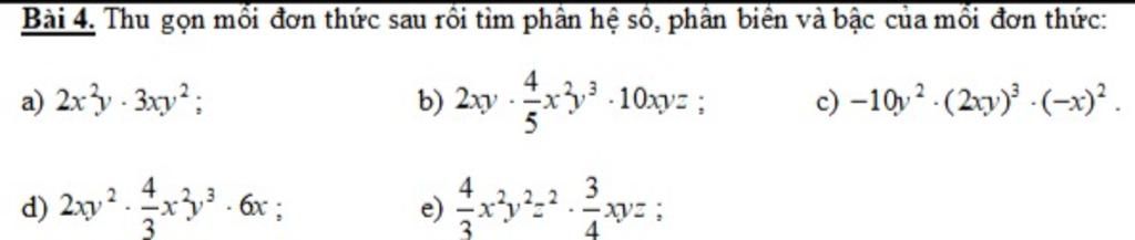 `e) 4/3 x^2y^2 z^2 . 3/4 xyz`