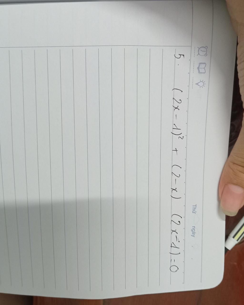 `5)` `(2x-1)^2+(2-x)(2x-1)=0`