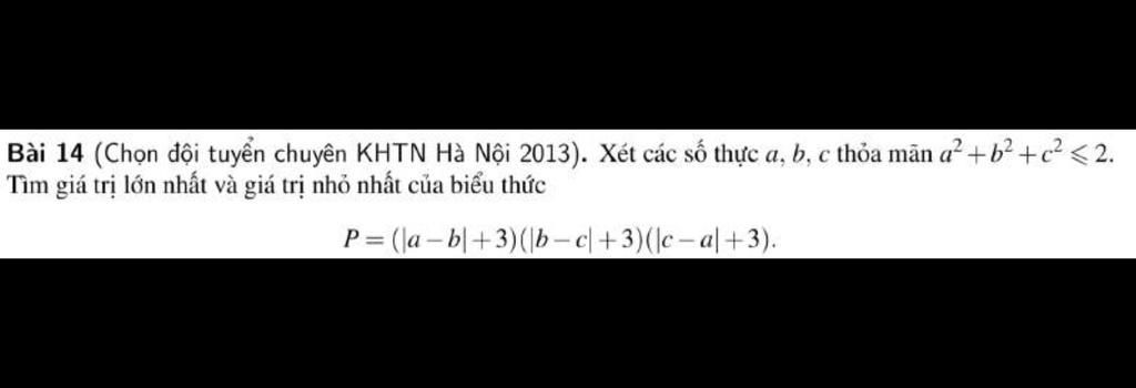 mình hỏi xíu, thay cái gt a^2+b^2+c^2 = 2 bằng gt a^4+b^4+c^4=3 thì có hướng giải nào kh ạ