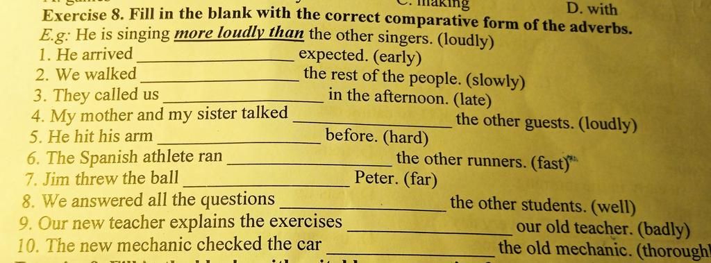 `-` Với adv ngắn : S + V + adv_er + than + N