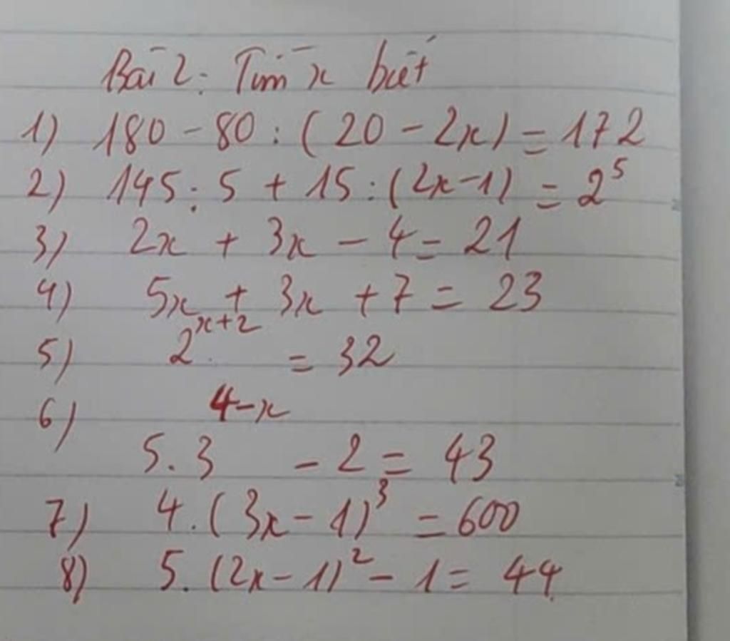 `2,` `145 : 5 + 15 : (2x - 1) = 2^5`