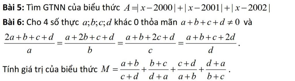 Bài 5: Tìm GTNN của biểu thức A=x–2000|+|x−2001|+|x−2002|