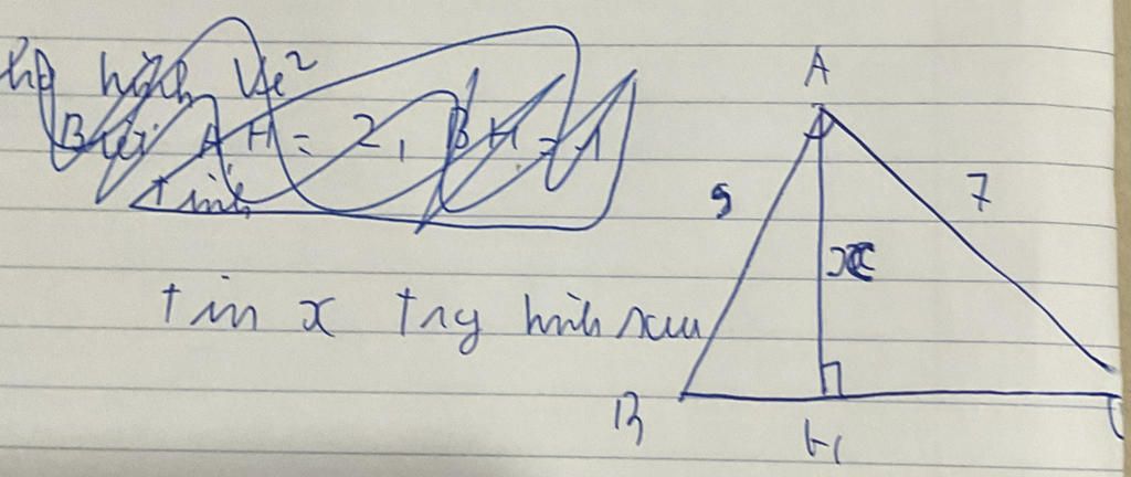 `AH^2+BH^2=AB^2=>x^2+(25/sqrt{74})^2=5^2=> x~~4`