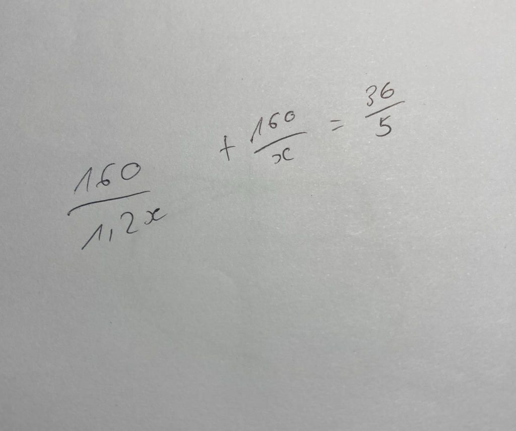 $\frac{160}{1.2x} + \frac{160 \cdot 1.2}{1.2x} = \frac{36}{5}$