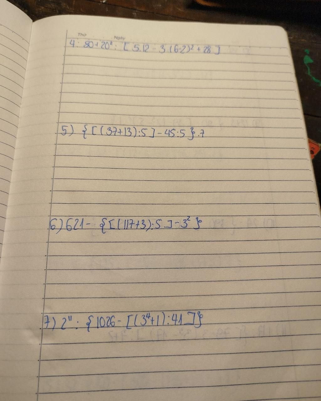 `4) 80 + 20^2 : [ 5 . 12 - 3( 6 - 2 )^2 + 28]`
