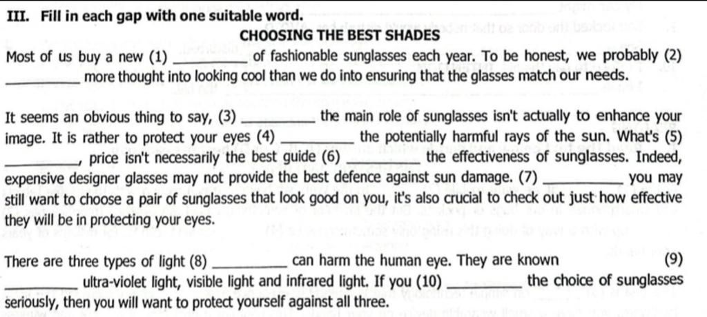 8. that (Đại từ quan hệ chỉ loại ánh sáng gây hại)