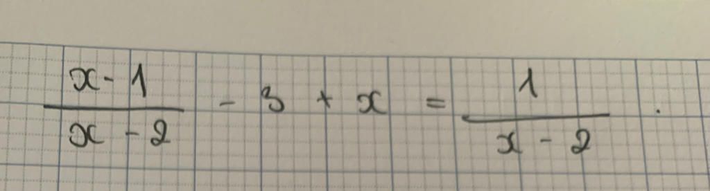 `(x-1)/(x-2)-3+x=1/(x-2)`