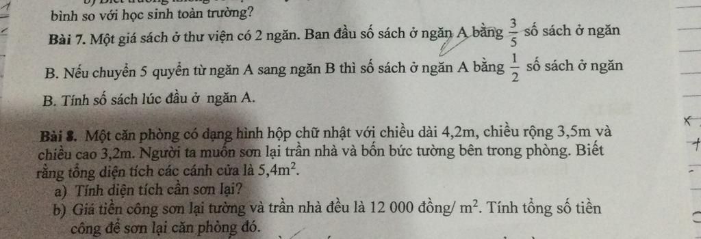 `→` Số sách ở ngăn `A` là: `3/5``x` `-` `5`