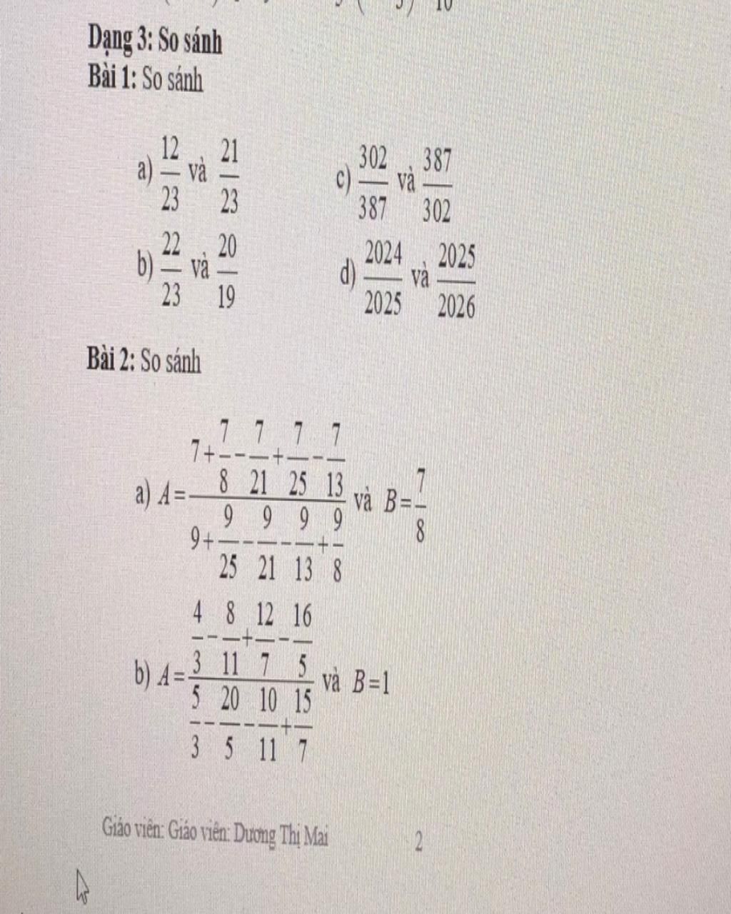 $b)$ `A = (4/3 - 8/11 + 12/7 - 16/5)/(5/3 - 20/5 - 10/11 + 15/7)` và `B = 1`