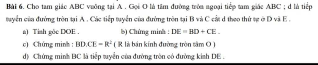 Bài 6. Cho tam giác ABC vuông tại A . Gọi O là tâm đường tròn ngoại tiếp tam giác ABC ; d là tiếp