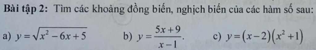 `to` Hàm số đồng biến trên `(5 ; +oo)` ; nghịch biến trên `(-oo ; 1)`