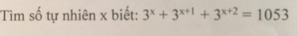 `3^x +3^(x+1) +3^(x+2) =1053`