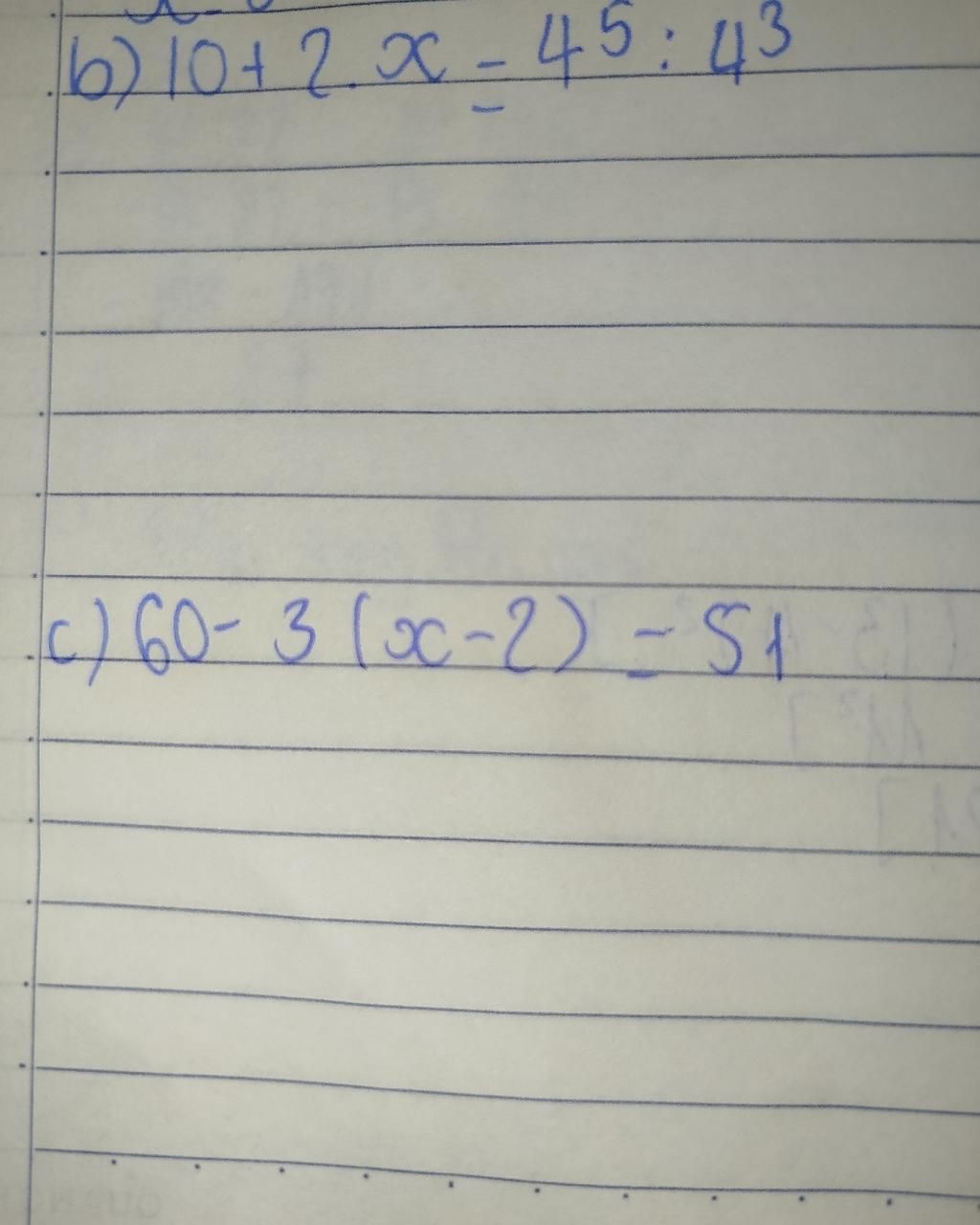 `b) 10 + 2 . x = 4^5 : 4^3`